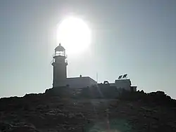 Prasonisi is the Greek word for "green island". During the summer, and when water levels are low enough, this island is a peninsula attached to Rhodes by a tombolo.[2] During the winter time, and when water levels are high enough, Prasonisi becomes an island. The southernmost tip of Prasonisi contains the Prasonisi Lighthouse. The closest Greek village is Katavia; however, there is a purpose-built settlement on Prasonisi that contains motels, convenience stores, restaurants, and windsurf rentals which are open seasonally. Near Prasonisi is Vroulia, an ancient settlement that contains an old mosaic tiled floor.[1]