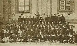 The oldest known mention of the settlement dates back to 1260.[3] It was granted town rights in 1392 by Polish King Władysław II Jagiełło and new privileges in 1542 and 1620.[3] It was annexed by Prussia in the Second Partition of Poland in 1793.[3] In 1807 regained by the Poles as part of the short-lived Duchy of Warsaw, in 1815 it became part of Congress Poland,[3] later forcibly integrated with Imperial Russia. During the January Uprising weapons for Polish insurgents were smuggled through the town and on April 11, 1863, a Polish unit commanded by Józef Oxiński fought the Battle of Praszka against the Russians nearby.[3] As part of Russian reprisals after the uprising, Praszka was stripped of its town rights in 1870. During World War I the town was occupied by Germany.[3] It became again part of Poland after the county regained its independence in 1918, and town rights were restored in 1919.[3] According to the 1921 census, the town had a population of 4,478, 65.8% Polish and 34.0% Jewish.[4]
