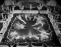 Nudity was generally banned, but permitted if it was presented as documentary footage from other cultures.[195] Filmmaker Deane Dickason took advantage of this loophole to release a documentary titled Virgins of Bali in September 1932, which concerns a day in the life of two Balinese teenagers who are topless in much of the footage.[196] The film's introduction notes that Balinese women were normally topless and only covered their breasts for ceremonial duties; Doherty commented dryly that, "fortunately" for Dickason, his film's two "stars" rarely performed ceremonial duties. Typical of the film is the first scene where the two girls take a bath in the river while Dickason narrates, talking breathlessly about how the two girls "bathe their shamelessly nude bronze bodies".[196] Virgins of Bali, which consisted almost entirely of scenes of Balinese women in various states of undress under the guise of showing what daily life in Bali was like, was a successful film with men at the time and contributed to make Bali into a popular tourist destination.[196]
