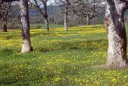 Oak savanna with buttercups in Sams Valley, Oregon.