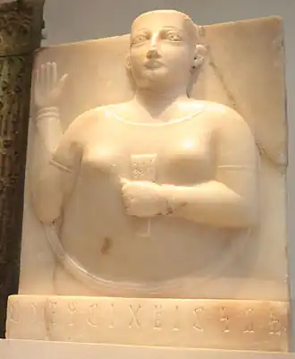 It is not known whether Bahrain was part of the Seleucid Empire, although the archaeological site at Qalat Al Bahrain has been proposed as a Seleucid base in the Persian Gulf.[45] Tylos was integrated well into the Hellenised world: the language of the upper classes was Greek (although Aramaic was in everyday use), while Zeus was worshipped in the form of the Arabian sun-god Shams.[46] Tylos even became the site of Greek athletic contests.[47]