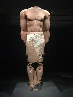 Awsan was a South Arabian kingdom that lasted from the 8th to 7th centuries BCE, with a brief resurgence in the 2nd or 1st century BCE. Awsan is centered around a wadi called the Wadi Markha. The name of the capital of Awsan is unknown, but it is assumed to be the tell that is today known as Hagar Yahirr, the largest settlement in the wadi. The territory under its control was sizable enough that it was a powerful contender in local power politics. In the late 7th century BCE, under the reign of its ruler Murattaʿ, Awsan entered a military conflict with the Kingdom of Saba that brought about its demise. The Sabaean king, Karib'il Watar, defeated Awsan and proceeded to obliterate it. An inscription left behind claims that Karib'il killed over 16,000 people and took 40,000 more as prisoners. After this event, the wadi was left abandoned, and Awsan disappeared from the historical record for the time being.[78] Saba had divided its territory between its then-allies, Qataban and Hadhramaut. Half a millennium later, when Qataban's control over the Wadi Markha was declining, Awsan was able to briefly re-emerge, in the 2nd or 1st centuries BCE. This final phase of the Awsanite kingdom is the only period in South Arabian history where kings were deified.[79]