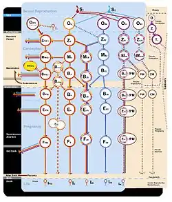 - (o) indicates the (natural &) standard reproductive and embryogenic pathway