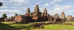 Pre Rup (/ˈprɛ ruːp/; Khmer: ប្រែរូប, Prê Rub [prae.ruːp]) is a Hindu temple at Angkor, Cambodia, built as the state temple of Khmer king Rajendravarman[1]: 116 [2]: 73–74 [3]: 361–364 and dedicated in 961 or early 962. It is a temple mountain of combined brick, laterite and sandstone construction.