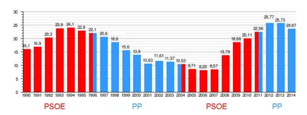 - ^ "Provisional balance of the legislature: less unemployment but fewer jobs". El País (in Spanish). 2015-10-22.
