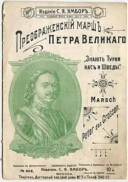 The "Preobrazhensky Regiment March" (Russian: Марш Лейб-гвардии Преображенского полка) is one of the most famous Russian military marches.[19] It was used as an unofficial national anthem in imperial times.[20] The march has been often used in modern Russia, particularly in the annual Victory Day Parade for the trooping the colours and the inspection of troops.