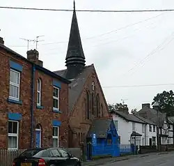 The church was built in 1875 to a design by the Chester architect John Douglas. It has lancet windows and a flèche which is tiered at its base.[2] At the end of the gable is a timber porch.[3]