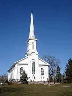 The Church is featured prominently in the opening credits of the NBC television show Ed. Although the series took place in fictional Stuckyville, Ohio, Tom Cavannaugh (Ed) drives through Westfield, drives past the church while taking in the sites of his hometown.[1]