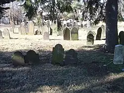 The cemetery across Mountain Avenue is part of the Church property and was first used for burial about 1720. Seventy-three veterans of the Revolutionary War are buried there. Local men preparing for the War of 1812 are said to have trained on the church grounds. Others fought in the Civil War, the Spanish–American War and both of the 20th century world wars. Three lost their lives in World War I, twelve in World War II, and three more in the following Cold War.