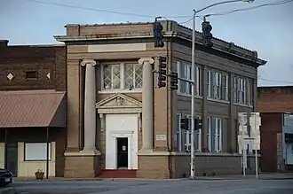 The district was listed on the National Register of Historic Places in 2008.[1] It is bounded on the north side of the railroad by Elm, 3rd and Walnut Streets, and on the south by Vine and Main Streets to the east and west, and 3rd Street to the south, although the block of 3rd Street east of the courthouse is excluded, and that west of the courthouse is included.[2]