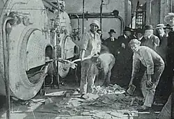Therefore, gold backed a third of issuances, with the remainder based on commercial securities.[69] At first, the notes issued would not be convertible. Full convertibility would be achieved later, and 12 pence was the valuation target. This reform simultaneously dealt with two points of the government programme: the creation of a central bank and the relief of the Treasury's debt with the Bank of Brazil.[68] The bank's president, José Maria Whitaker, was too orthodox for this reform and was replaced by São Paulo native Cincinato Braga, one of the main mentors of the new policy.[70] In February, the remaining stocks from the third recovery scheme, 3.4 million bags, began to be sold. They were equivalent to 22% of the world's coffee production from the 1922–1923 crop, and sales were spaced out so as not to increase the price too much.[71]