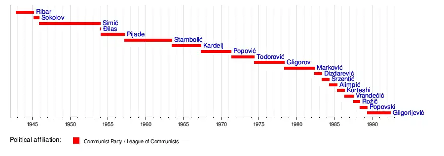 - ^ Ribar was President of the Presidency of the National Assembly and as such was head of state in the 1945–1953 period.