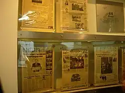 The Presseum (Korean: 신문 박물관) is the only newspaper museum of South Korea, situated on Sejongno, in Jongno District, central of Seoul. The museum was established and is operated by The Dong-A Ilbo, one of the four major newspaper companies of South Korea. Presseum is a compound word to denote "press" and "museum" which represents its character as a newspaper museum.[1] Presseum is located on the third and fourth floors of the Dong-a Media Center and consists of three exhibition rooms; "Newspaper Hall", "Special Exhibition Hall" and "Media Education Hall".[2][3]