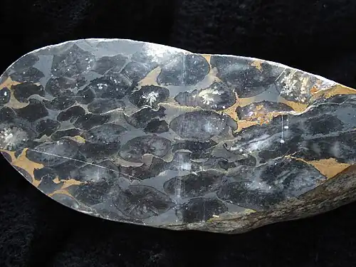 In a tectonic manner, deformed rocks also show evidence of pressure solution including stylolites at a high angle to bedding.[4] The process is also thought to be an important part of the development of cleavage.