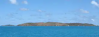 Prickly Pear is an uninhabited island of the British Virgin Islands in the Caribbean. Even though the island doesn't have permanent residents, it has a quiet beach bar called SandBox Bar and Grill and recreational water sports facility on it. It is located on the north side of North Sound, opposite Virgin Gorda.
