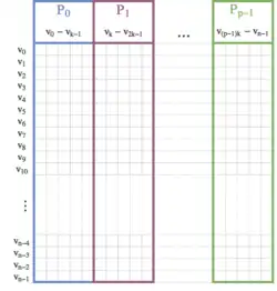 - Assign each processor a set of consecutive vertices of length .