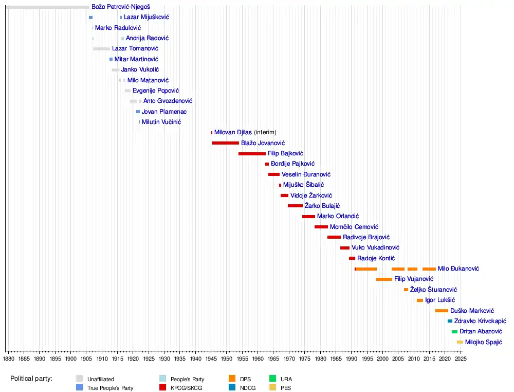 15 February 1991 | 5 February 1998 | 6 years, 355 days | Democratic Party of Socialists | Momir Bulatović![]() (1990–1998) | |