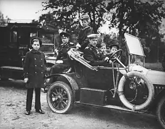 In his youth, before World War I, Prince Andrei toured Europe with his parents. At Biarritz, he joined his great uncle King Edward VII of the United Kingdom at the Palace Hotel. Prince Andrei joined the Russian navy and served under his father Grand Duke Alexander Mikhailovich of Russia. Later he became lieutenant in the Chevalier guards, whose colonel-in-chief was his uncle, Emperor Nicholas II. Just before the Russian revolution, he was the only member of his family to accompany the Empress Alexandra and her four daughters on their last visit to the churches of Novgorod.[4] It was the last time he saw them.[5]