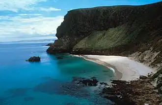 San Miguel Island, together with numerous small islets around it, is defined by the United States Census Bureau as Block 3010, Block Group 3, Census Tract 29.10 of Santa Barbara County, California. The island is uninhabited.[3][4] The highest peak is San Miguel Hill, at 831 feet (253 m).