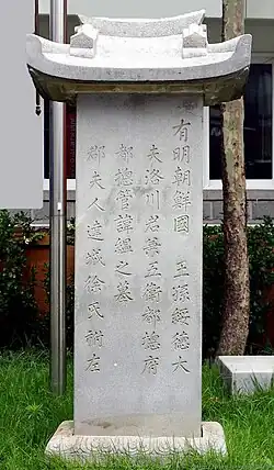 As King Jeongjo succeeded to the throne in 1776, Prince Eunsin, the new king's late half-brother, was appointed to be the new heir to Prince Yeollyeong, but not as an heir to Prince Nakcheon.[25][26] The status of Prince Nakcheon being the adopted son of Prince Yeollyeong was also annulled during Jeongjo's reign.[27] In 1819, during the reign of Sunjo, some officials suggested making either Prince Eunsin or another relative to be the heir to Prince Nakcheon, but the proposal was not approved.[26]
