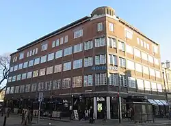 Princes House (formerly Norwich Union House) is an office and residential building in the centre of Brighton, part of the English coastal city of Brighton and Hove. The prominently sited building, an example of Harry Stuart Goodhart-Rendel's "inimitable response to Modernism",[1] was purpose-built as the headquarters of the Brighton & Sussex Building Society, forerunner of the Alliance & Leicester.[2] The office was later used by Norwich Union, another financial institution, and now houses a restaurant and flats. The steel-framed structure is clad in red bricks with inlaid mosaicwork, forming a carefully detailed façade, and the corner elevation has an arrangement of brickwork and windows which suggests "the pleated folds of a curtain". The building is listed at Grade II for its architectural and historical importance.[3]