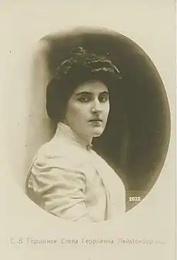 Photo of Anastasia and George's only daughter: Duchess Elena Georgievna of Leuchtenberg, Princess Romanovskaya, married on 18 July 1917 to Count Stefan Tyszkiewicz, member of the Tyszkiewicz family, Magnates of Poland and Lithuania (c. 1910).
