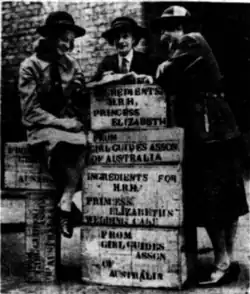 - ^ a b c "Guides here may get piece of Princess's wedding cake". The Herald. Sydney, Australia. 1947-11-15. p. 5.