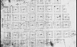 The land the families settled was owned by a white farmer named Thomas Osburn. In 1837 he and four other white landowners had it platted (had a cadastral survey carried out). There are records of Priscilla Baltimore living in Brooklyn in 1839, and in 1851, she bought lot 521, on Madison Street, in the second house east of 6th Street. She built a simple wood-frame[3] house there.[2] The site was studied in an archeological dig in 2014.[3]