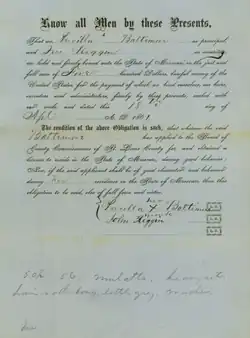 In 1861, one "Pricilla Baltimore" (sic), occupation "washer", paid $500 as a "Free Negro Bond" to the State of Missouri.[2]
