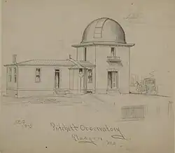 C. W. Pritchett secured a generous donation in 1874 from Berenice Morrison to purchase equipment and construct a building for the Morrison Astronomical Observatory. Work began in early 1875 and a telescope was mounted within a year. Dr. Pritchett continued as director of the observatory following the end of his presidency and served until September, 1905. He conducted some remarkable research with the assistance of his two sons and others. Many have claimed that Pritchett discovered the "Great Red Spot". In fact, he made observations of the Spot, but did not discover it. Observations of the are probably the best known, and Dr. Pritchett was designated as a Fellow of the Royal Astronomical Society of England.[4][5]