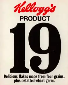 Product 19 was a breakfast cereal made by Kellogg's. Introduced in 1967, it consisted of lightly sweetened flakes made of corn, oats, wheat, and rice, marketed as containing all required daily vitamins and iron. The product was discontinued in 2016.