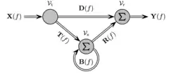 The transfer function of a propagation graph forms an infinite series[3] The transfer function is a Neumann series of operators. Alternatively, it can be viewed pointwise in frequency as a geometric series of matrices. This observation yields a closed form expression for the transfer function as where denotes the identity matrix and is the spectral radius of the matrix given as argument. The transfer function account for propagation paths irrespective of the number of 'bounces'.