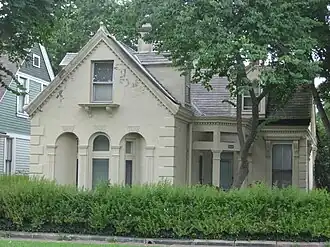 Prosser House is a historic home located at Indianapolis, Indiana. It was built about 1885, and is a small 1+1⁄2-story, stuccoed frame dwelling with applied decoration in cast concrete. It has a cross-gable roof with five dormers. The interior features elaborate plaster work.[2]: 2–3