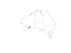 This mintbush sometimes grows on ridges amongst granite rocks and has been collected in the Avon Wheatbelt, Coolgardie and Great Victoria Desert biogeographic regions.[2][3]