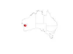 This mintbush grows in rocky places near granite and ironstone in the Avon Wheatbelt, Murchison and Yalgoo biogeographic regions.[2][3]