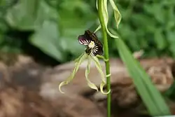 Prosthechea cochleata, commonly referred to as the clamshell orchid[1] or cockleshell orchid, is an epiphytic, sympodial New World orchid native to Central America, the West Indies, Colombia, Venezuela, and southern Florida.[2] It is also known as the black orchid in Belize, where it is the national flower.[3]