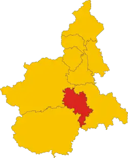 The province of Asti (Italian: provincia di Asti; Piedmontese: provincia d'Ast) is a province in the Piedmont region of Italy. Its capital is the city of Asti. To the northwest it borders on the Metropolitan City of Turin; to the southwest it borders on the province of Cuneo. To the east it borders on the province of Alessandria, while in the south it shares a very short border with the Ligurian province of Savona. It has an area of 1,504.5 square kilometres (580.9 sq mi), and, As of 2017, a total population of 215,871.