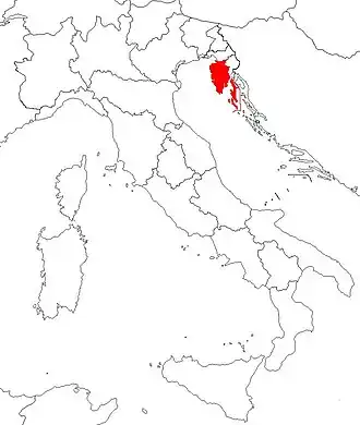 The province of Pola was divided in 1938 into 42 comuni (municipalities) and had an area of 3,718 km2 with a population of 294,492 inhabitants (80 ab./km2).[1] It was located in the peninsula of Istria.
