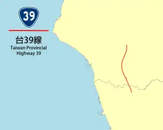 Provincial Highway 39 is a Taiwanese highway that starts from Xinhua, Tainan City and ends in Alian District, Kaohsiung. The highway connects THSR Tainan Station with Tainan City and northern Kaohsiung City, and runs along the underpass of the elevated viaduct for high-speed rail. The route length is 18.83 kilometres (11.70 mi) .[1]