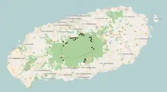 King cherry is quite rare in number in its habitat. In 1908, a single tree was discovered in the north slope of Mt. Halla near Gwaneumsa Temple by Taquet although according to Koidzumi it was a different species.[22] In 1932, Koidzumi discovered a single tree in the south slope of Mt.Halla.[22] In 1962, the first Korean official plant resource survey team was established and found three trees. Next year in 1963, the team found another three trees.[21] In 1965, Han Chang-yeol reported that wild cherry trees which grow in Mt. Halla in Jeju Island are mostly Prunus subhirtella var. pendula form. ascendens (Edo higan) and Prunus donarium (Yamazakura) and king cherry is rare in number, around 10 individuals, having been found in a half century. [23][Note 2] In 1998, Kim Chan-soo reported that 33 king cherry trees were found around Mt. Halla.[2] From March 2015 to October 2016, Warm-Temperate and Subtropical Forest Research Center, Korea Forest Research Institute conducted a survey of king cherry on Mt. Halla. The center found 194 king cherry trees are growing in 173 locations. The trees are located at altitudes between 165 m and 853 m. The trees range 5–19 m in height, 15–145 cm in diameter and 15–265 year old.[5]