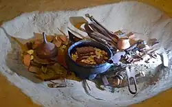 The main feature of the Przeworsk culture are burials. These were mostly cremations, with occasional inhumation. Warrior burials are notable, which often include horse-gear and spurs. Some burials are exceptionally rich, overshadowing the graves of Germanic groups further west, especially after 400 AD.[9] Pottery and metalwork are often rich and show a great variety [10]