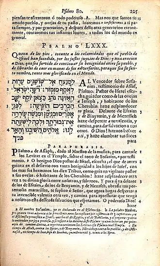 ![]() Psalm 80 from Las alabancas de santidad, a Spanish translation of the Books of Psalms by Rabbi Judah Leon Templo (d. 1675), Amsterdam 1671. | |