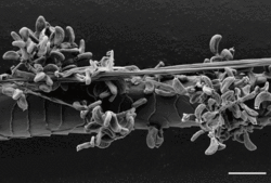 | A bat hair colonized by Pseudogymnoascus destructans | |