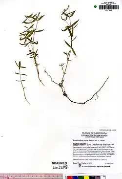 2. ^ Rabeler, R. K. & R. L. Hartman. (2002). Pseudostellaria sierrae (Caryophyllaceae), a new species from California. Novon 12:1 82-6.