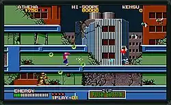 Psycho Soldier (サイコ・ソルジャー, Saiko Sorujā) is a platform game developed by Japanese software company SNK. It was released in 1987.[2] It is a distant sequel to Athena, released a year earlier, featuring a late descendant of that game's main character. Ocean Software on their Imagine label released home computer versions of the game for the ZX Spectrum, Commodore 64 and Amstrad in 1987.