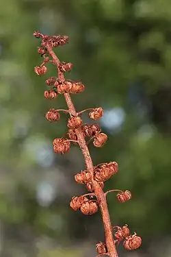 Pterospora, commonly known as pinedrops, woodland pinedrops, Albany beechdrops, or giant bird's nest, is a North American genus in the subfamily Monotropoideae of the heath family, and includes only the species Pterospora andromedea. It grows as a mycoheterotroph (relying on fungi rather than photosynthesis for nutrients) in coniferous or mixed forests. It is widespread across much of Canada as well as the western and northeastern United States to Mexico. Along with Monotropa it is one of the more frequently encountered genera of the Monotropoideae.[2][3]