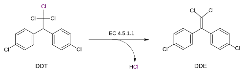 Chemical toxins in the environment are one of many factors influencing adolescent development. In the early 1970s, more than 4000 people were accidentally exposed to polybrominated biphenyls (PBBs).[5] A study was conducted in the child-bearing women exposed to the toxin, with their baby girls reaching menarche by the age of 11.6 years, compared to girls who had low exposure reaching menarche by the age of 12.2–12.6 years.[5] In everyday life, people are exposed to a various number of pesticides, with a large amount found to be disruptive to the endocrine system. Although dichlorodiphenyltrichloroethane (DDT) and the metabolite dichlorodiphenyl dichloroethane (DDE) were banned in the United States in the 1970s, countries around the world are still using these pesticides.[5]