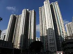 Public housing in Hong Kong is a set of mass housing programmes through which the Government of Hong Kong provides affordable housing for lower-income residents. It is a major component of housing in Hong Kong, with nearly half of the population now residing in some form of public housing.[1] The public housing policy dates to 1954, after a fire in Shek Kip Mei destroyed thousands of shanty homes and prompted the government to begin constructing homes for the poor.