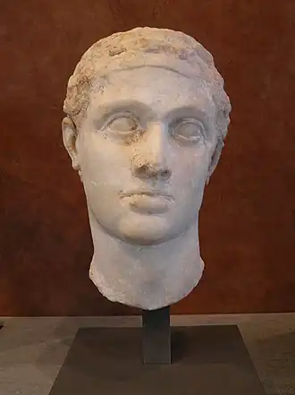 Clodius' father, Appius Claudius Pulcher, was consul in 79 BC and a supporter of Sulla. Shortly after he became proconsul of Macedonia in 77 BC, he died, leaving three sons. The youngest of these sons was Publius Clodius; his two elder brothers were Appius and Gaius.[11] He also had three sisters all named Clodia:[12] the eldest was the wife of Quintus Caecilius Metellus Celer; the second daughter wed Lucius Licinius Lucullus; the third wed Quintus Marcius Rex. The identity of Clodius' mother is disputed, as is the precise relationship between the sons of father Appius and the two Metelli (Celer and Nepos).[13]