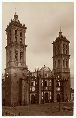 The Basilica Cathedral of Puebla, as the Cathedral of Our Lady of the Immaculate Conception is known according to its Marian invocation, is the episcopal see of the Archdiocese of Puebla de los Ángeles (Mexico). It is one of the most important buildings in the historic center of Puebla declared a World Heritage Site by UNESCO. It has the prerogative of being the first sumptuous temple that under fine architectural designs was built in the Americas, consecrated in 1649, ahead of the Metropolitan of Mexico that was dedicated in 1653. It was founded by Philip II of Spain.[1]